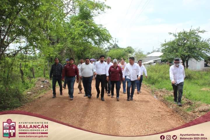 En la Ra. El Cibalito la Dra. Luisa del Carmen Cámara Cabrales en compañía del Ing. Daniel Fernández Valenzuela Coordinador territorial del tramo 1 del Tren Maya, integrantes del cabildo, el secretario del ayuntamiento, directores de la presenta administración, y autoridades locales, supervisaron los avances de la Rehabilitación de un camino cosechero con material pétreo, acción realizada por FONATUR.