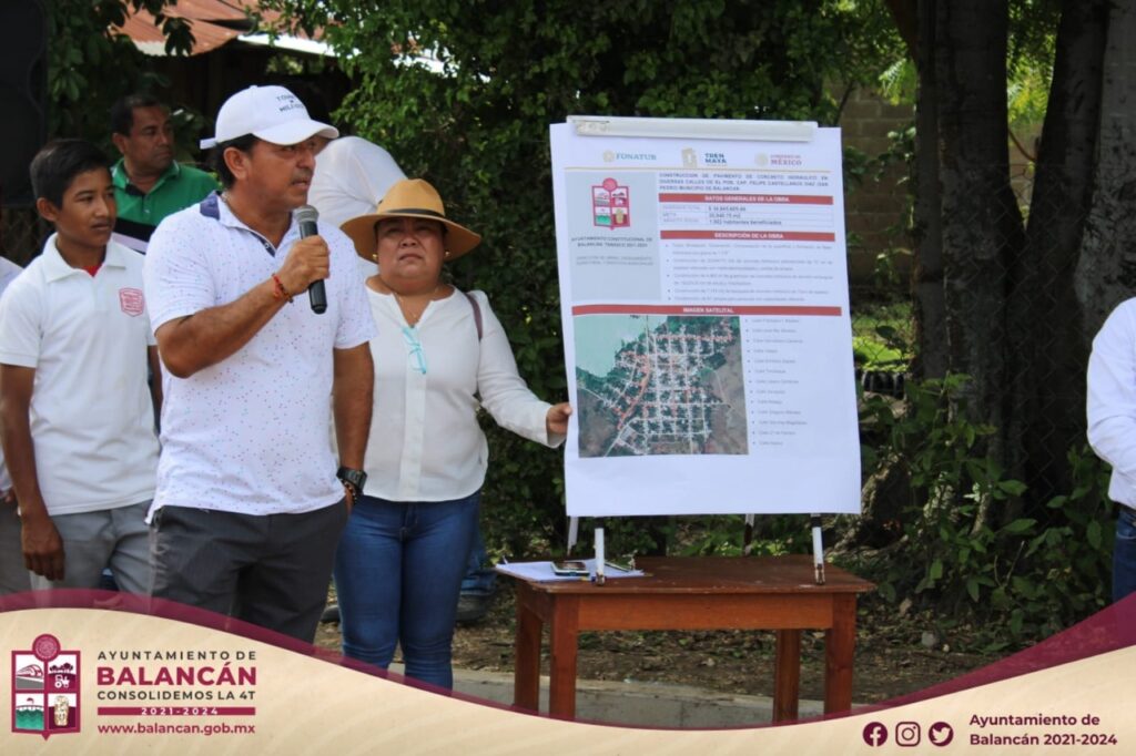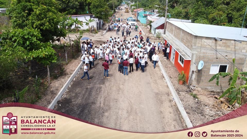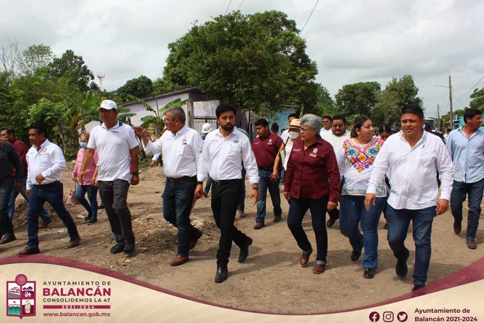 “Hoy Balancán tiene dos grandes aliados el Lic. Andrés Manuel López Obrador y Javier May Rodríguez”, expreso la Dra. Luisa del Carmen Cámara Cabrales Presidenta Municipal, al supervisar las obras que se están realizando en el Poblado San Pedro tales como la construcción de calles con pavimento hidráulico, la rehabilitación de la planta de tratamiento de aguas residuales y el sistema de agua potable, con recursos de FONATUR. Ahí mismo también informo a la ciudadanía que en fechas próxima se comenzara con la construcción de las instalaciones del EMSaD. La acompañaron el Ing. Daniel Fernández Valenzuela Coordinador territorial del tramo 1 del Tren Maya, integrantes del cabildo, el secretario del ayuntamiento, directores de la presente administración, el delegado municipal del poblado, así como jóvenes estudiantes y pobladores.