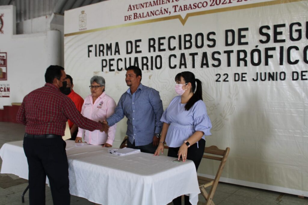 Con la finalidad de impulsar las actividades productivas del municipio, se llevó a cabo la entrega del Seguro Catastrófico; por parte de la Dra. Luisa del Carmen Cámara Cabrales Presidenta Municipal, el M.V.Z. José Javier de los Santos Luna Sánchez Jefe de departamento en representación del M.V.Z. Arturo Caraveo Márquez Subsecretario de Ganadería. En su intervención la Presidenta Municipal agradeció el trabajo de manera coordinada realizado de la SADER, SEDAFOP y la Dirección de Desarrollo Municipal en favor de 681 productores ganaderos de Balancán beneficiados.