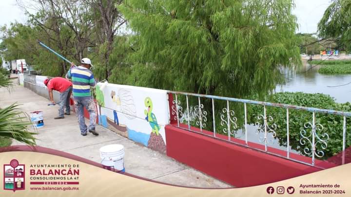 La Dirección de Obras Publicas a través de la coordinación de Servicios Municipales, continúan dando mantenimiento de pintura al Lago El Popalillo. Exhortamos a la población a cuidar de este espacio público y NO tirar basura. Recuerda todas y todos somos Balancán cuidemos de él.