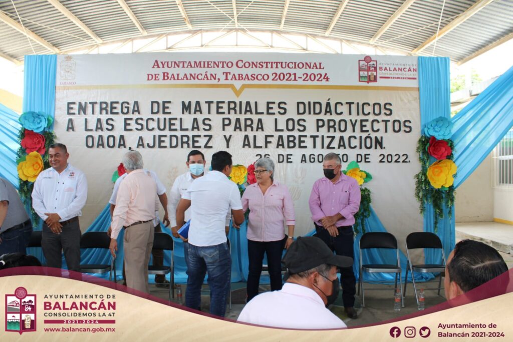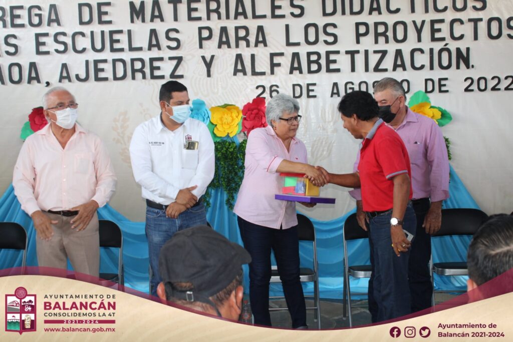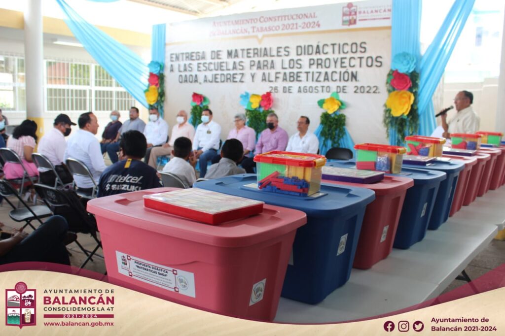 Con el objetivo de seguir impulsando el desarrollo en la educación de los niños y niñas, y apoyar a las instituciones educativas; este día la Dra. Luisa del Carmen Cámara Cabrales Presidenta Municipal de Balancán, realizó la entrega de materiales didácticos a las escuelas para los proyectos OAOA, Ajedrez y Alfabetización, evento realizado en las instalaciones de la Escuela Primaria «Salomé Marín Virgilio».