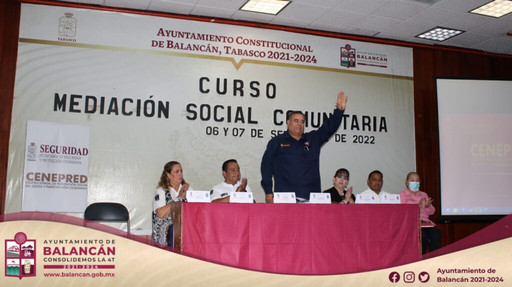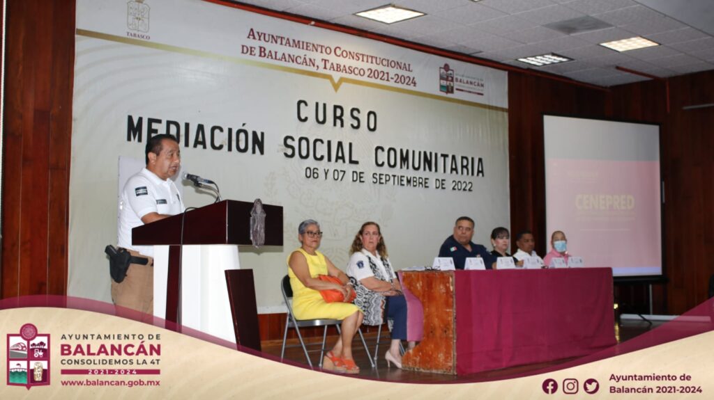 Estás actividades cursos están orientadas a servidores públicos y sociedad en general, en la cual se dan a conocer las medidas y herramientas de como ser un mediador social para el bienestar social de los habitantes de las colonias, ejidos y comunidades de los municipios. Estuvieron presentes elementos de seguridad pública de Balancán, así como los municipios de Emiliano Zapata, Tenosique, Jonuta, Macuspana, Comalcalco, Huimanguillo, Teapa, Paraíso; de igual manera Directores y Coordinadores de la presente Administración.