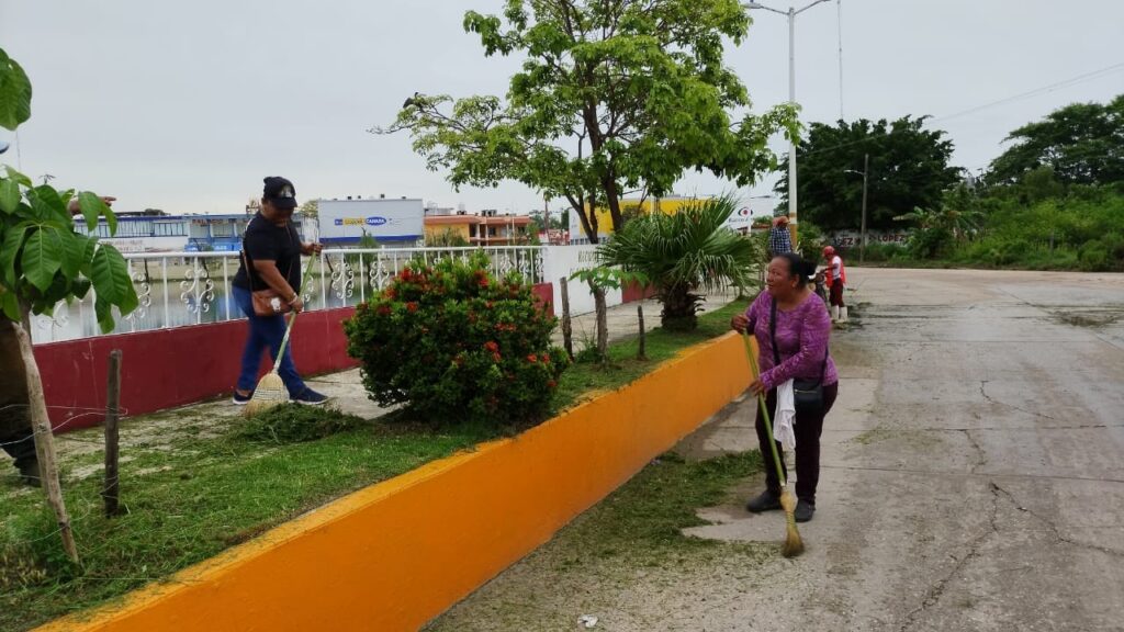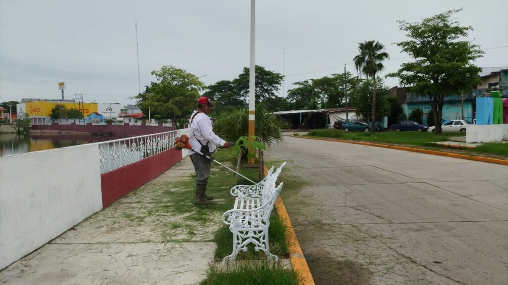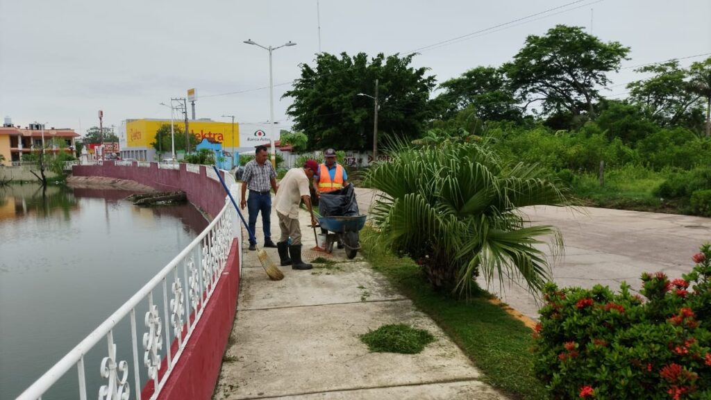 El personal de limpieza del Ayuntamiento de Balancán realizó el podado en la circunferencia del lago El Popalillo. De manera coordinada, están podando, barriendo y recogiendo la basura.