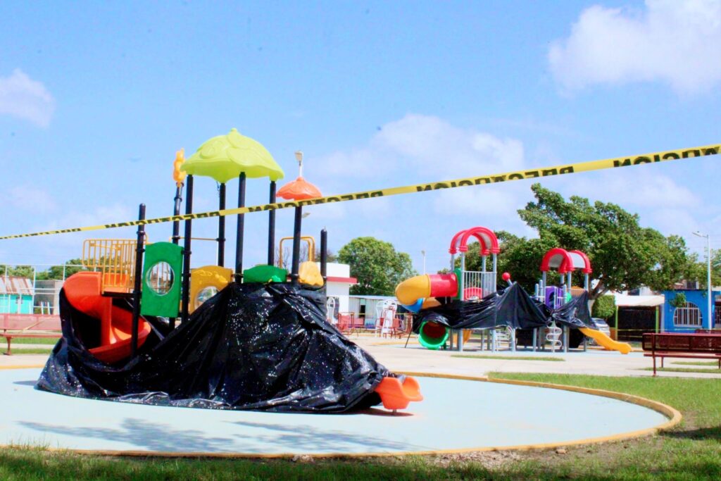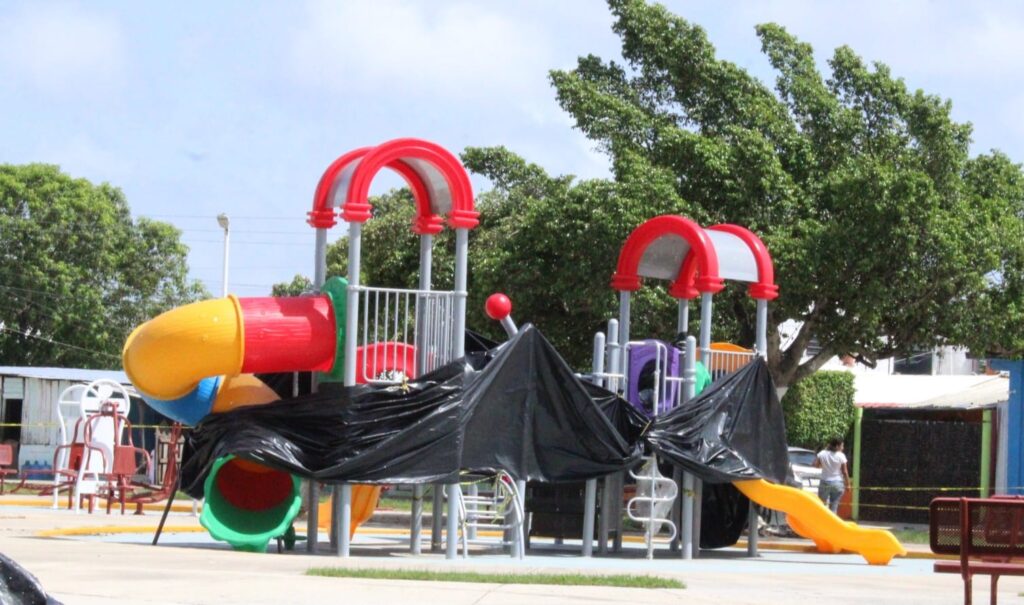 El Ayuntamiento de Balancán, presidido por la Dra. Luisa del Carmen Cámara Cabrales, realizó el techado de la cancha de básquetbol en el parque Celia Abreu y continúa trabajando en su mantenimiento. Se han instalado juegos nuevos para el disfrute de las familias balancanenses. #Balancán