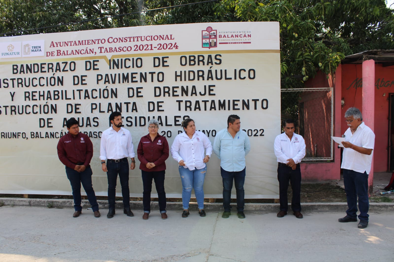 Banderazo de Inicio de Obras, Construcción de Pavimento Hidráulico y Rehabilitación de Drenaje, así como la Construcción de la Planta de Tratamiento de Aguas Residuales en la Villa El Triunfo….