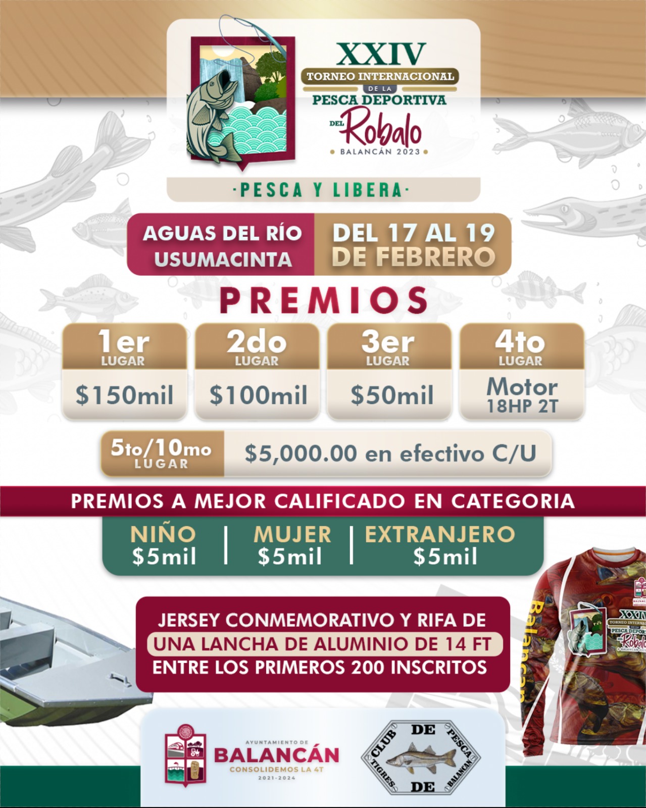El Ayuntamiento de Balancán que preside la Dra. Luisa del Carmen Cámara Cabrales y el Club de pesca Tigres de Balancán, te invitan a participar en la vigésima cuarta edición…